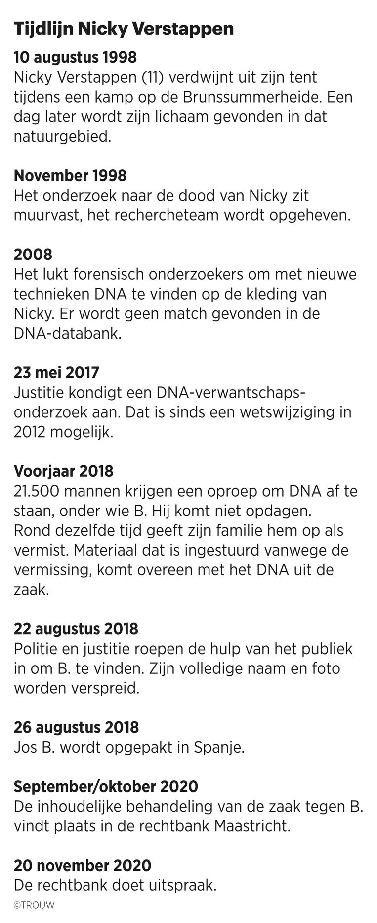 Rechtbank doet uitspraak in zaak nicky verstappen. Vrijdag zal het gerechtshof in den bosch uitspraak doen in het hoger beroep van de zaak nicky verstappen. Wordt verdacht van het doden, misbruiken en ontvoeren van de . Over jos brech (59) voor zijn rol in de dood van nicky verstappen, in augustus 1998 op de brunssummerheide. In het gerechtshof in den bosch wordt vrijdag uitspraak gedaan in de zaak rondom de dood van nicky verstappen in 1998.